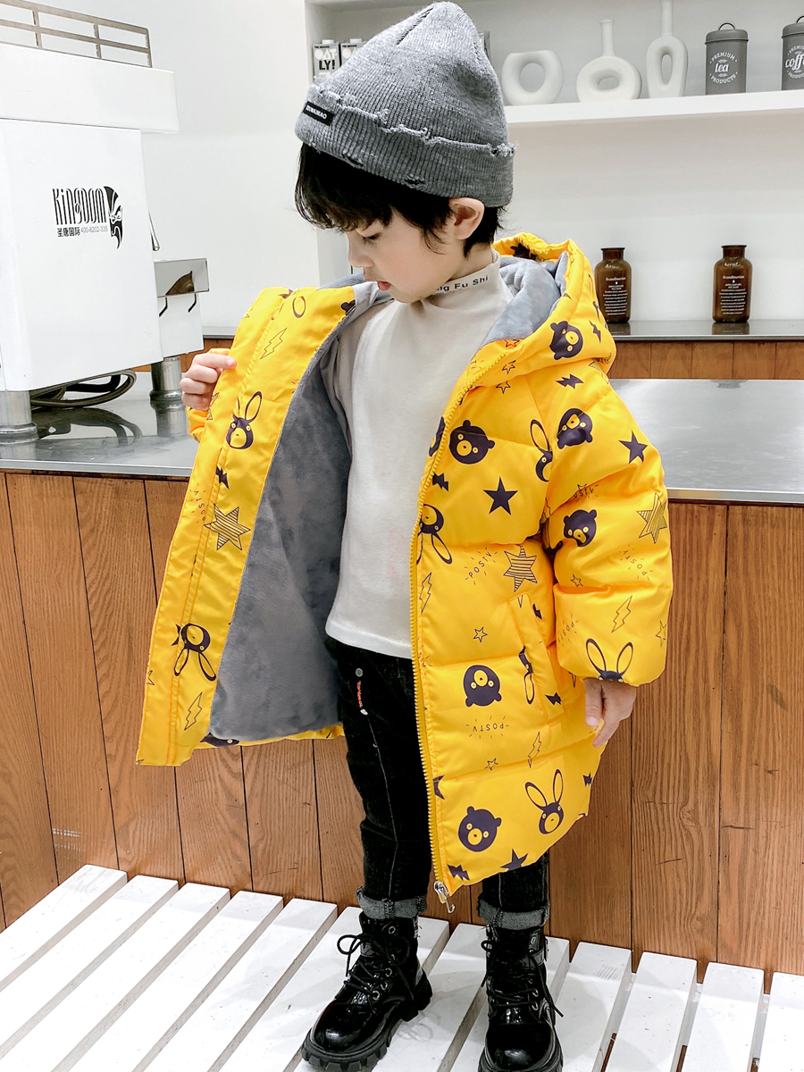 سترة أطفال شتوية للرجال على الطراز الغربي للأولاد متوسطة الطول 2023 ملابس أطفال جديدة معطف سميك