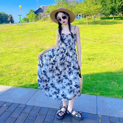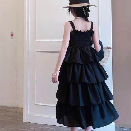 Children's Dresses Women's 2024 New Girls' Cake Skirts Big Children's Summer Clothes Skirts Girls' Summer Suspender Skirts