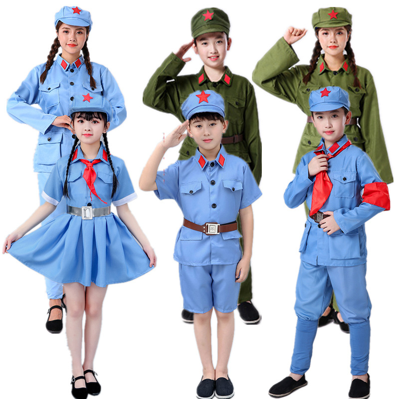| nameOriginal | Children's Eighth Route Army clothing men's and women's adult military uniform suit Red Guards Red Army New Fourth Army red star shining performance costume |