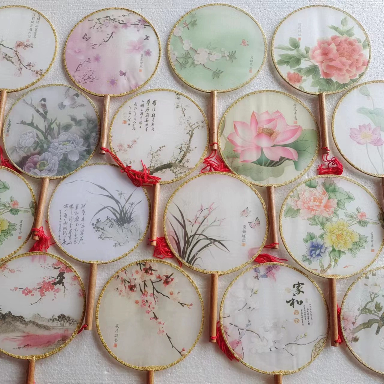 | nameOriginal | Children's fan trumpet 15 round fan 23 cm round fan thickened silk palace fan classical beauty ancient style dance round |