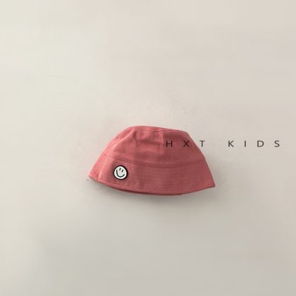 Children's Fisherman Hat Spring and Autumn Solid Color Smiling Face Western Style Bucket Hat Fashionable Children's Baby Spring Travel Wear Hat Men's Fashionable