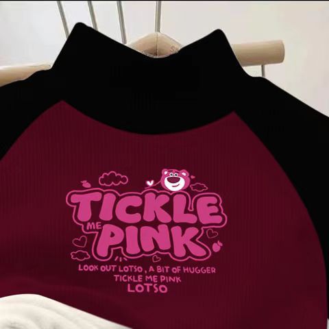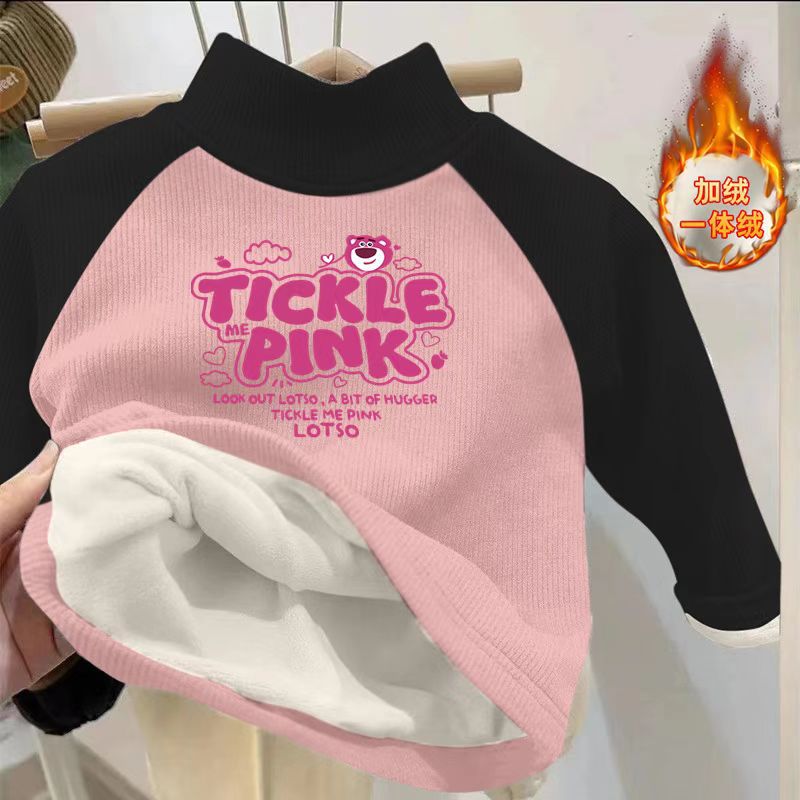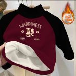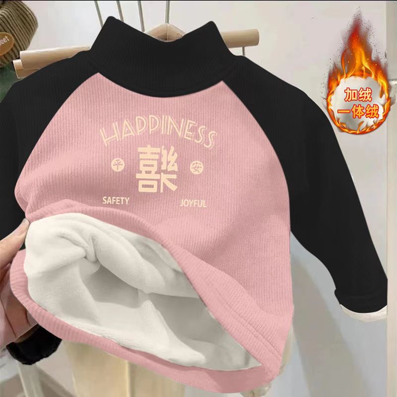 Children's fleece-lined top autumn and winter color matching printed long sleeve half turtleneck pullover boys and girls warm thickened base