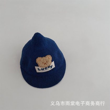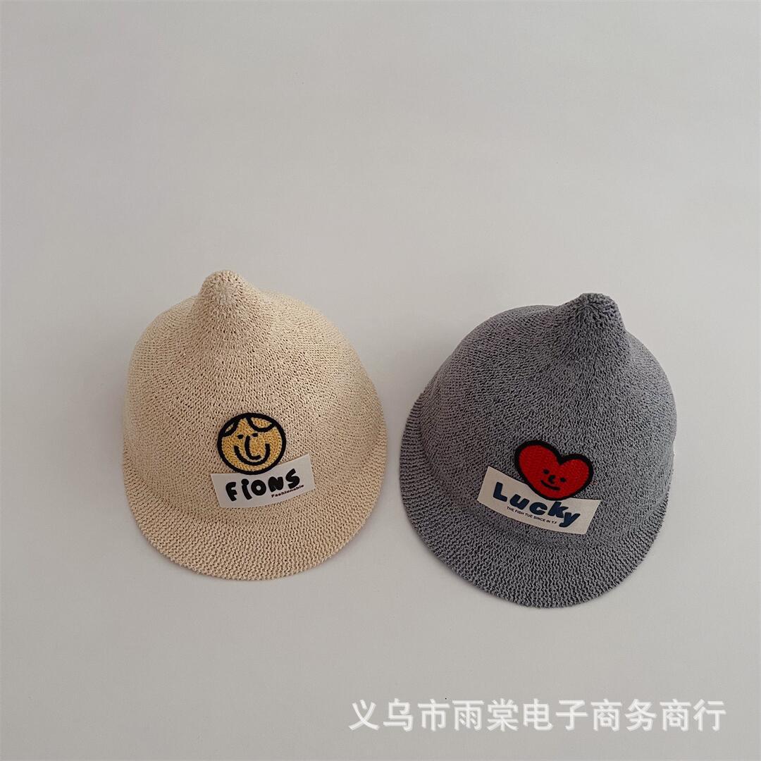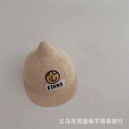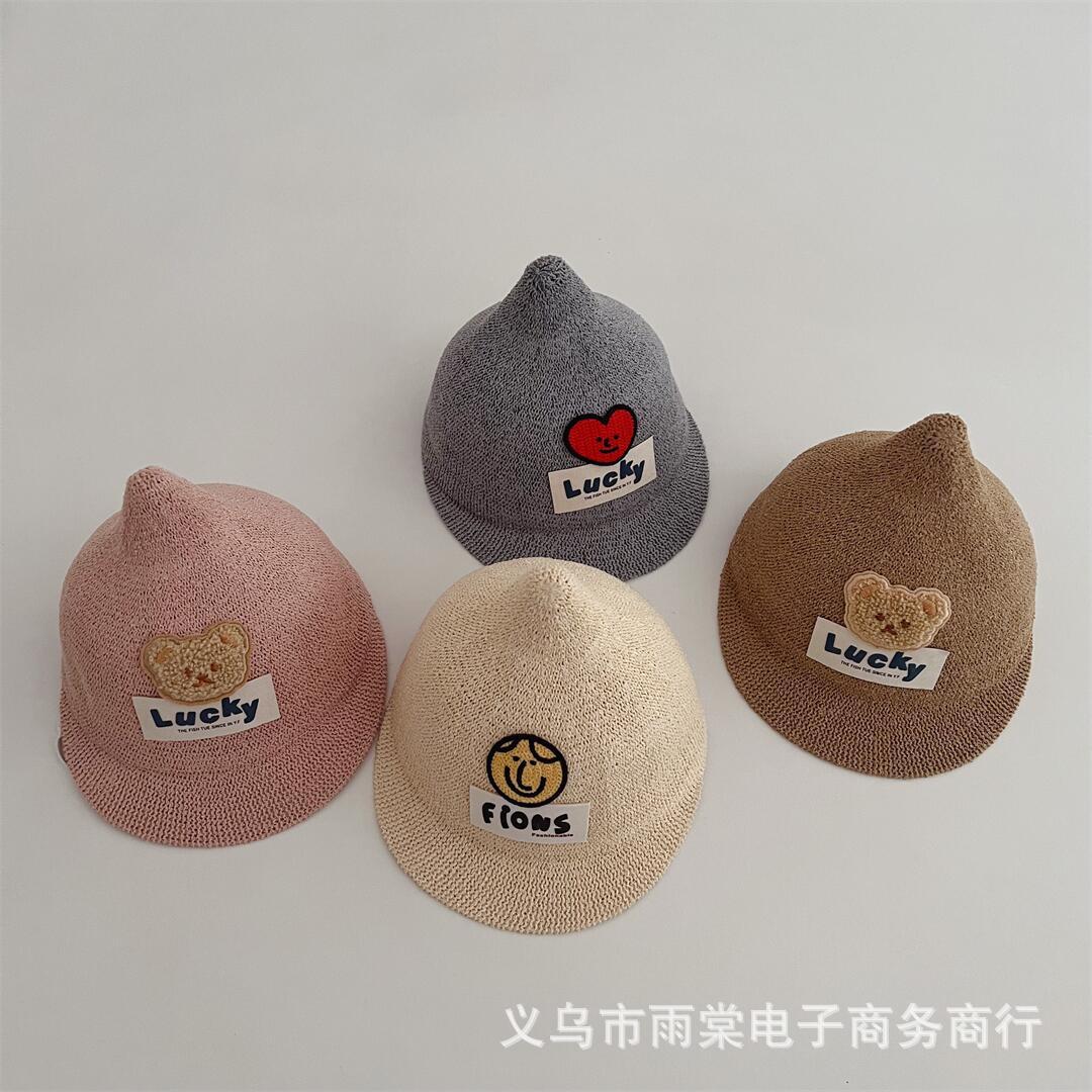 Children's Funny Expression Cap Cute Bear Knitted Sunshade Sunscreen Cap Summer Pointed Hat for Boys and Girls