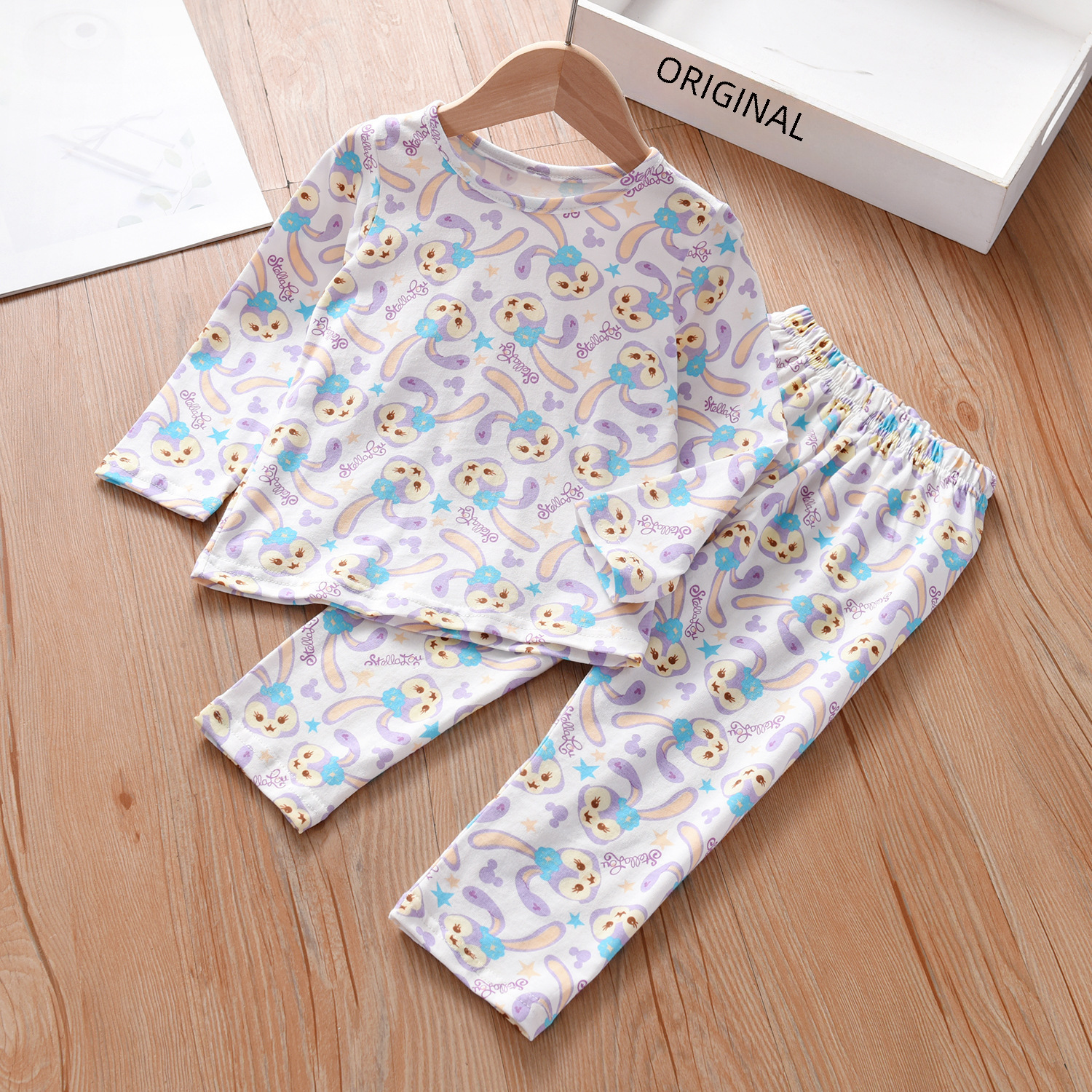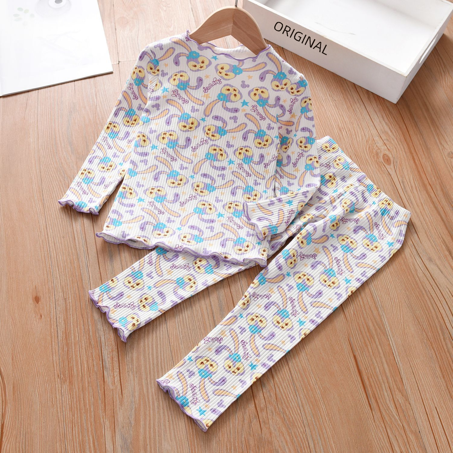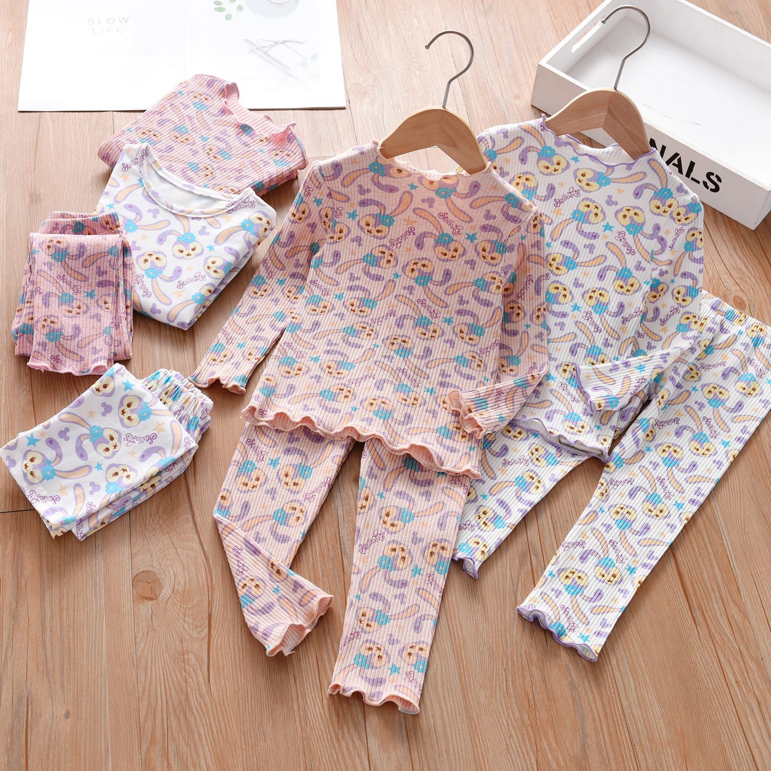 Children's girls' autumn clothes suit cotton pajamas bottoming shirt baby girls' cartoon printed pullover homewear warm spring and autumn