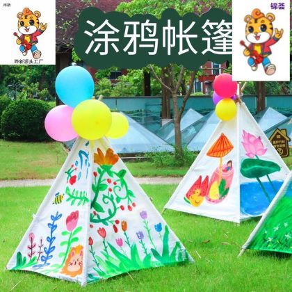 Children's Hand-painted Tent Painting Graffiti Handmade Outdoor Activities Triangle Small Tent Baby Princess Game House