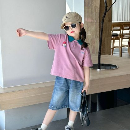 الأطفال الجينز 2024 صيف جديد للأطفال 2-7 سنة الكورية نمط خمس نقاط السراويل الفتيات سراويل تقليدية السراويل العصرية
