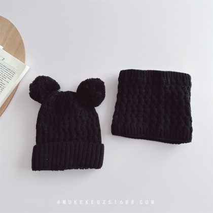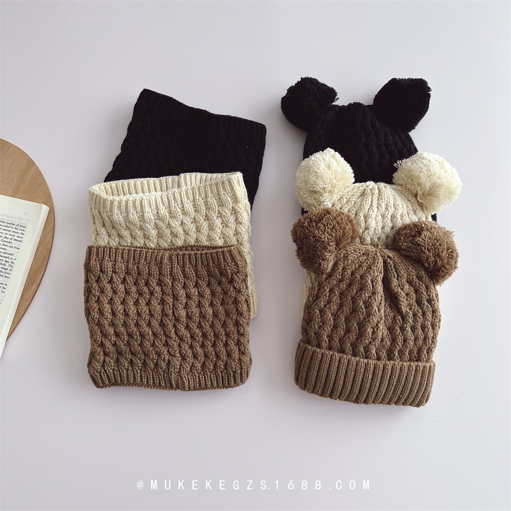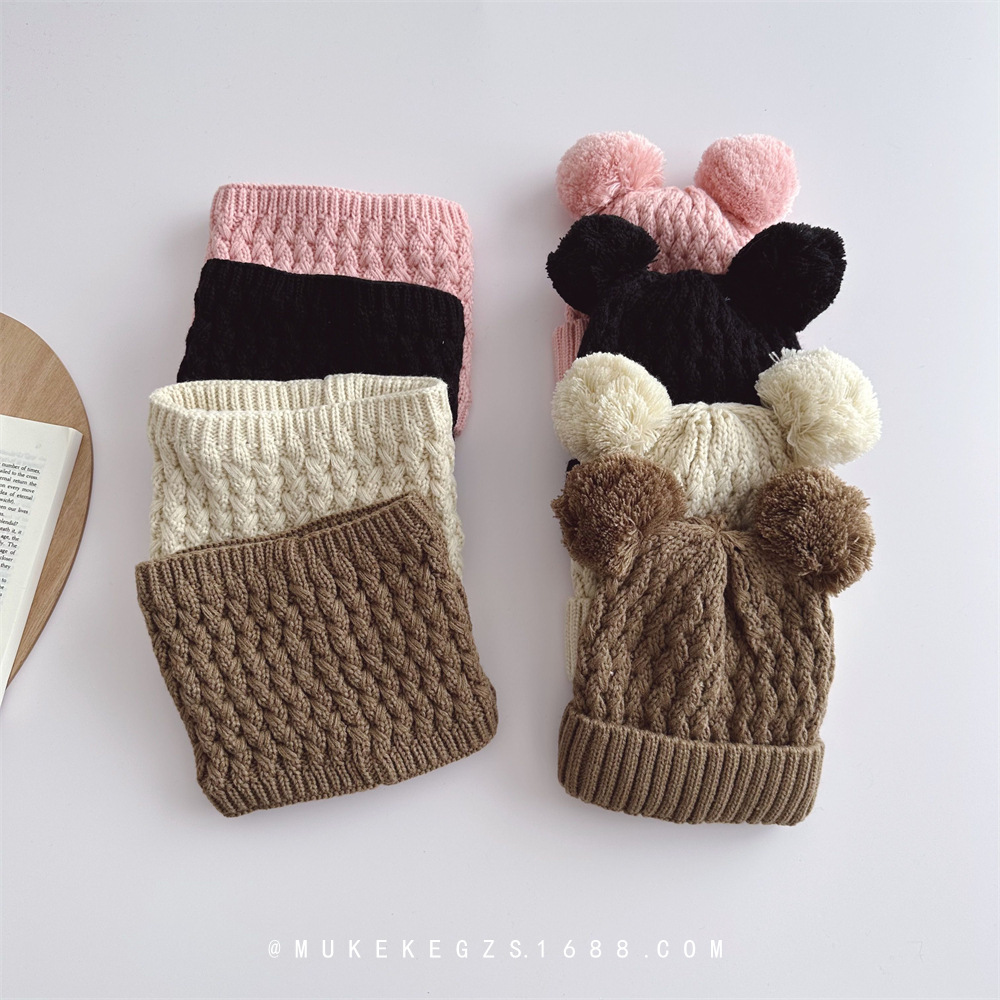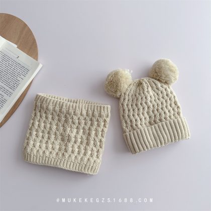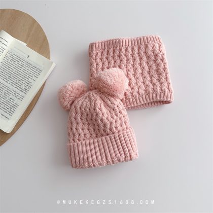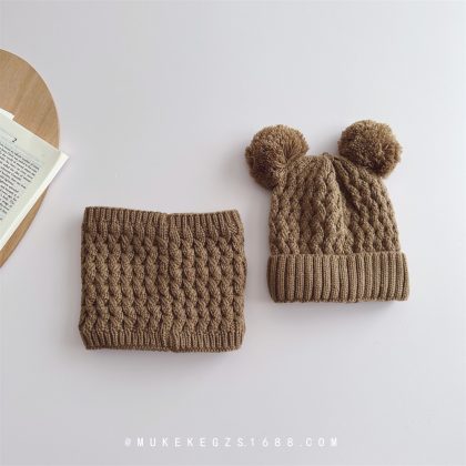 | nameOriginal | Children's knitted hat and scarf two-piece set Winter fleece-lined warm Big Ball 1-2 years old baby warm suit |