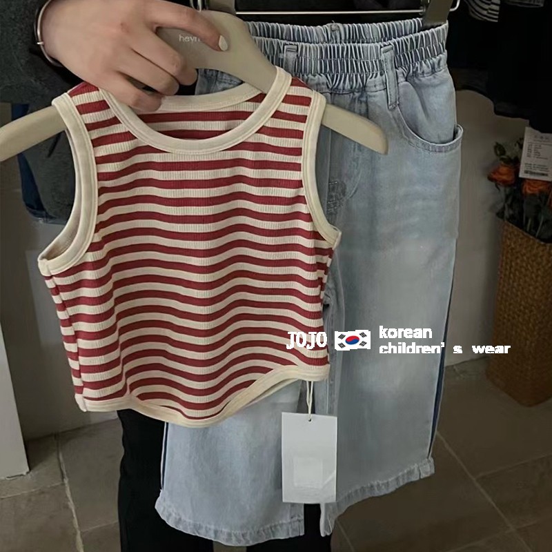 Children's Korean Style Children's Wear Girl's Striped Vest Summer New Style Children's Fashionable Sleeveless Shirt T Baby T