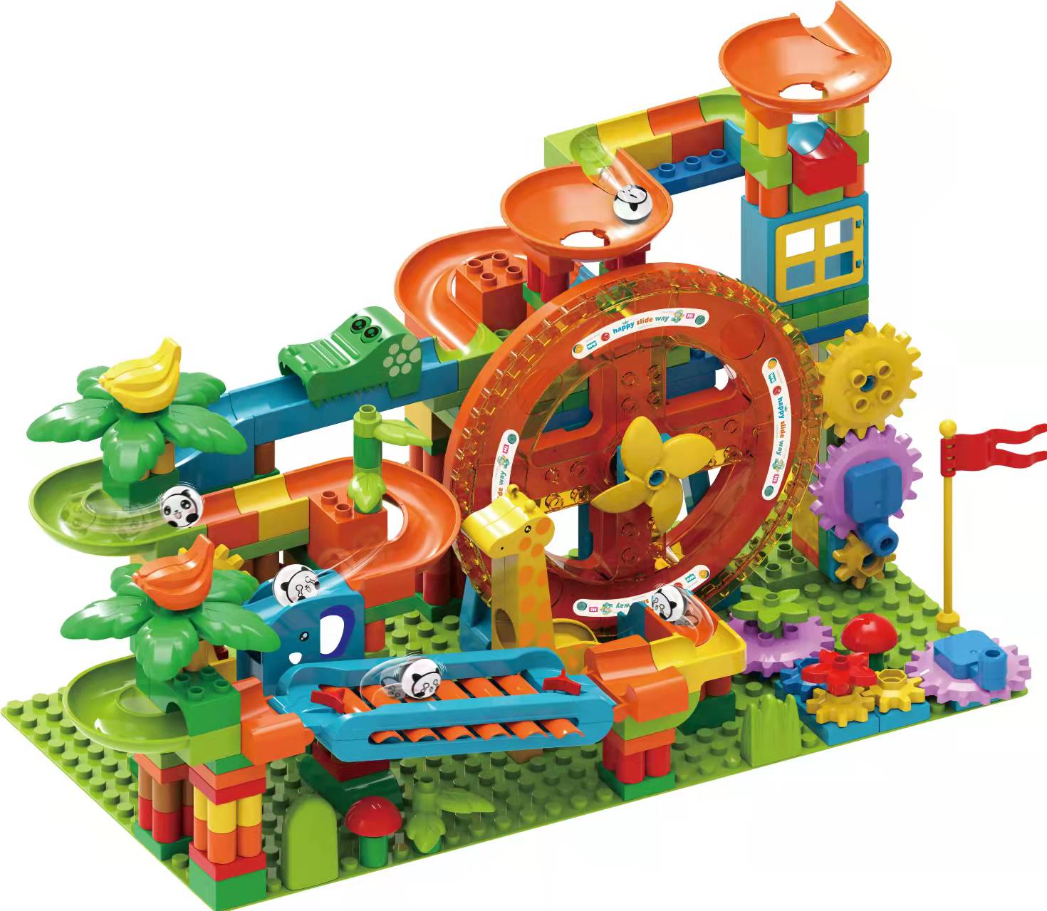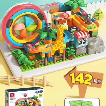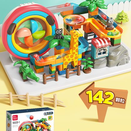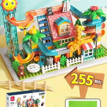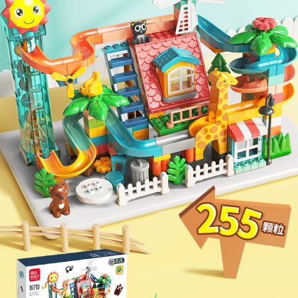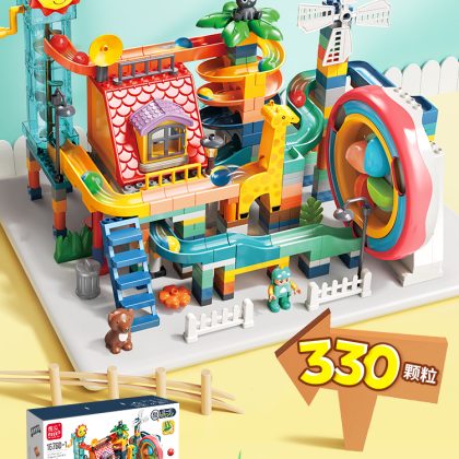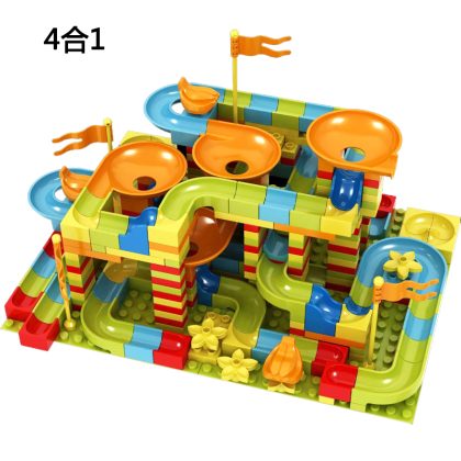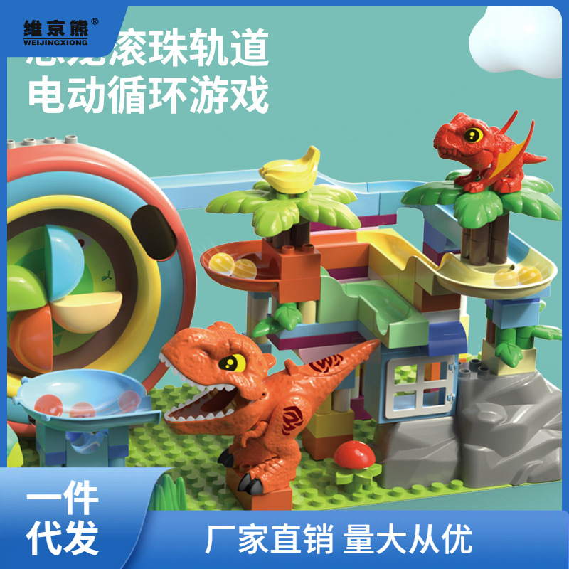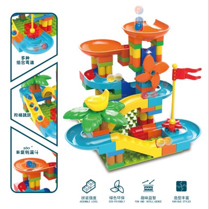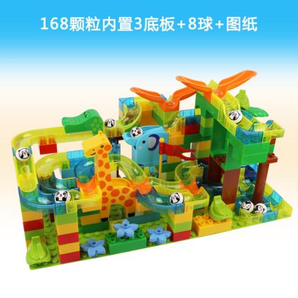 Children's large particle building blocks puzzle assembled marbles slide electric loop turntable sliding piano ball track ball toy