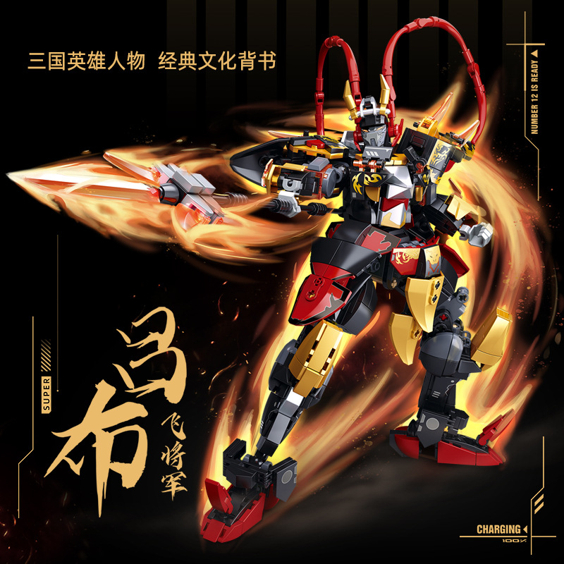 Children's Little Luban Mecha Master Guofeng Building Blocks Zhao Yun Lv Bu Guofeng Mecha Three Kingdoms Model Ornaments Educational Toys