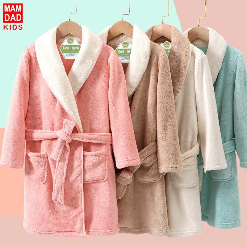 Children's New Flannel Nightgown Boys and Girls Autumn and Winter fleece-lined Thickened Pajamas Bath Towel Parent-Child Pajamas Bathrobe