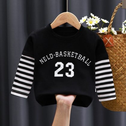 Children's New Round Neck Base Shirt Spring and Autumn Pure Cotton T-shirt Top Boys' and Girls' Solid Color Cartoon Single-piece Long Sleeve