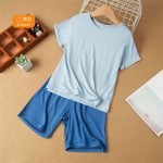 بيجامة أطفال من القطن والقطن حتى صيف 2024 لون جديد بدلة بأكمام قصيرة للوالدين والطفل ملابس منزلية للبيع بالجملة