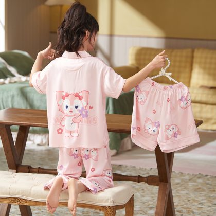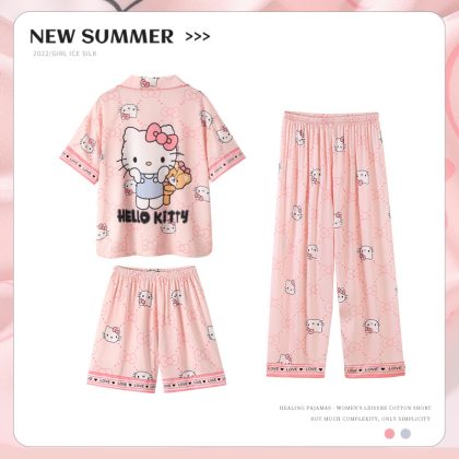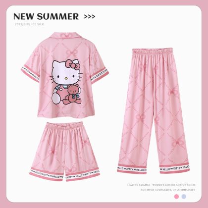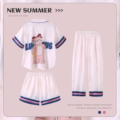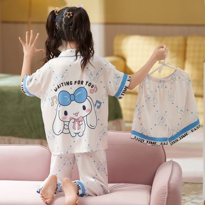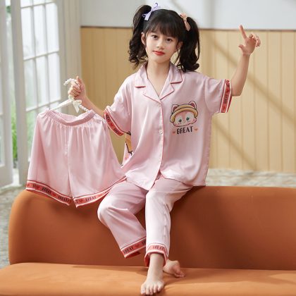 | nameOriginal | Children's Pajamas Set Thin Summer Short-sleeved Children's Ice Silk Women's Treasure Cartoon Mother and Daughter Parent-child Three-piece Fashionable Suit |