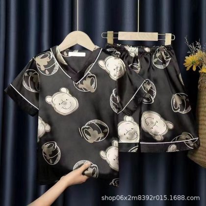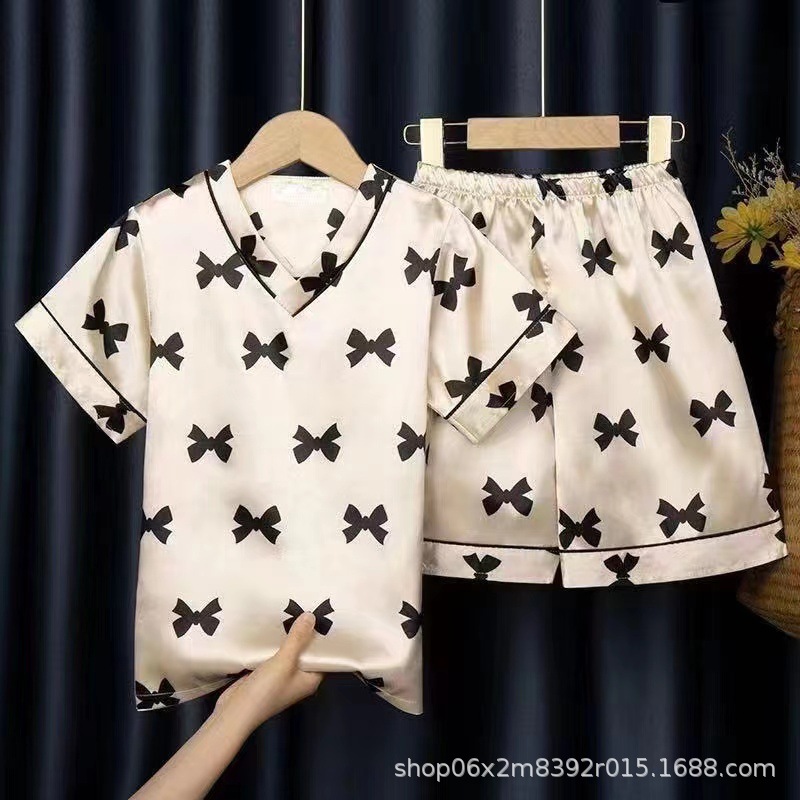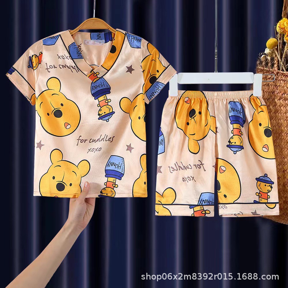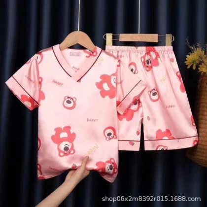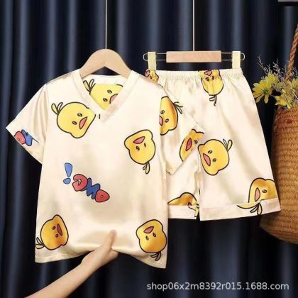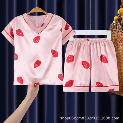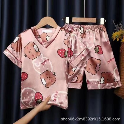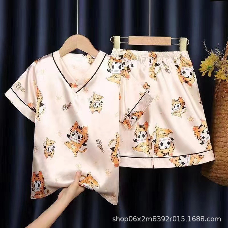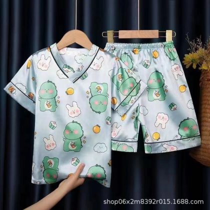 Children's pajamas summer ice silk short sleeve thin children baby boys and girls air conditioning clothes medium and big children home wear suit