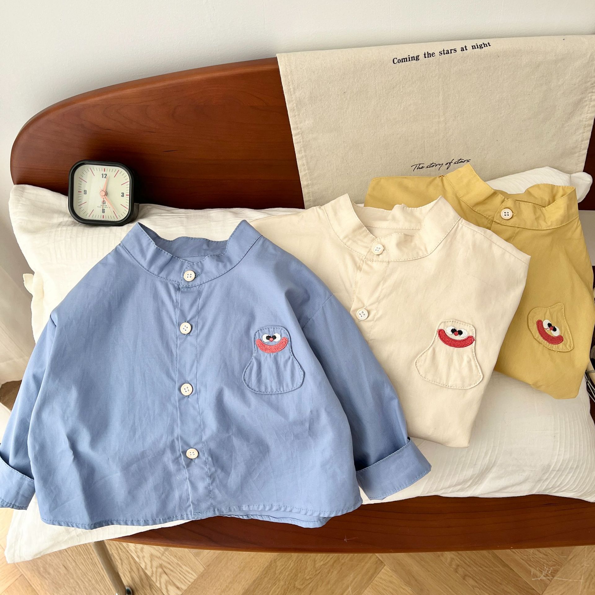 | nameOriginal | Children's patch shirt 0-5 years old spring South Korea children's clothing boys' stand collar shirt baby fashionable spring clothes AY405 |