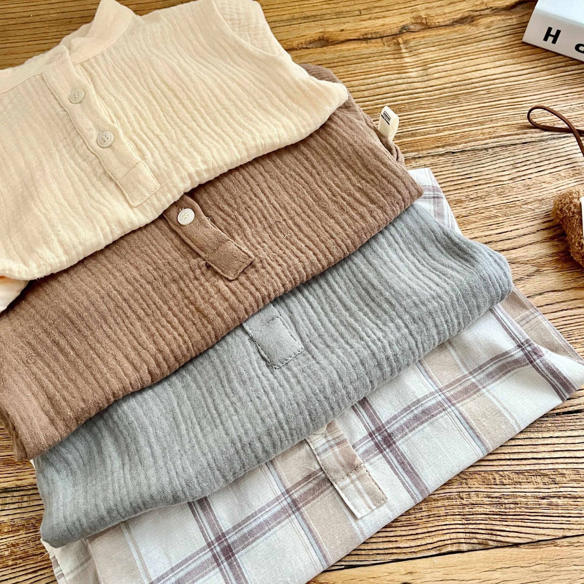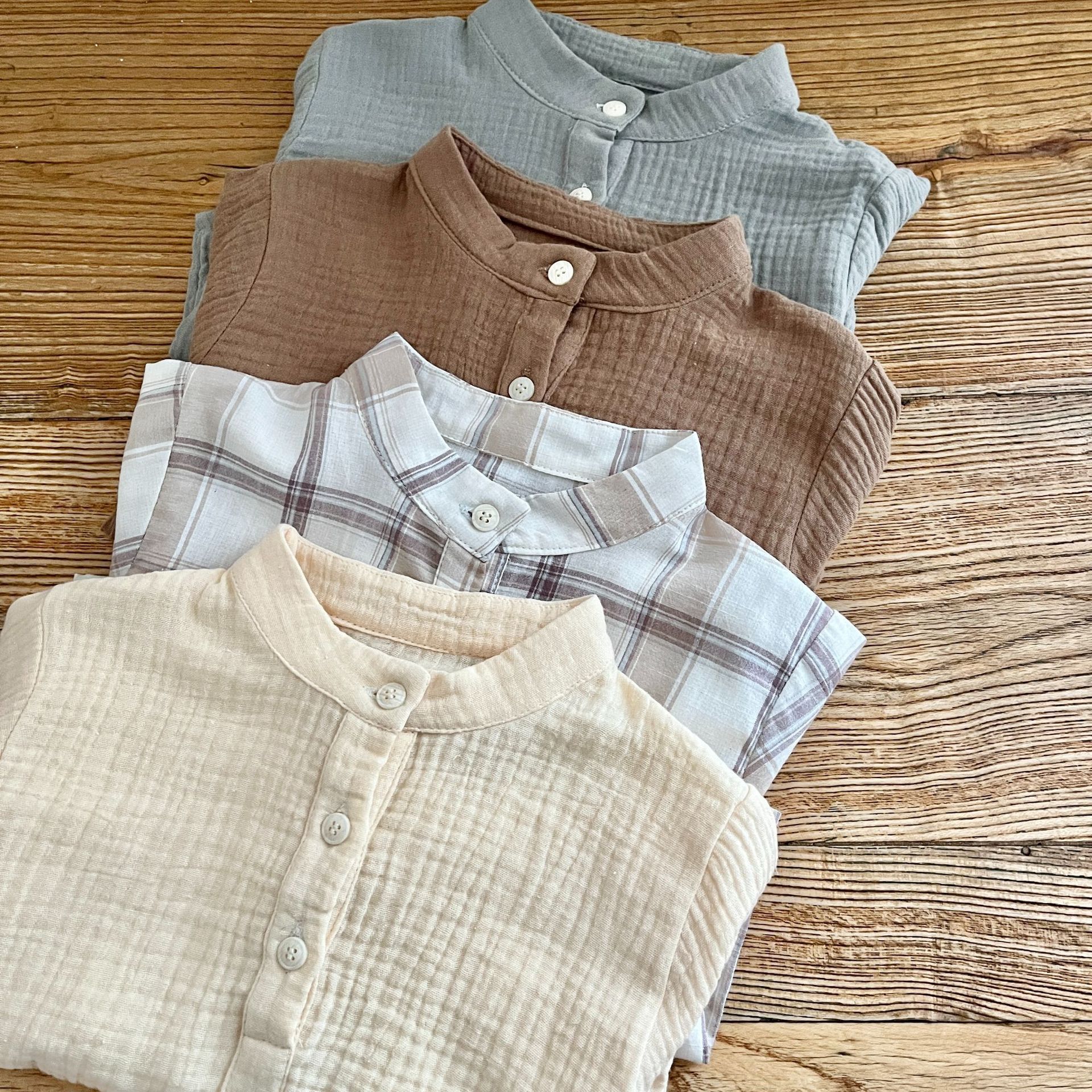 قميص منقوش للأطفال بعمر 0-5 سنوات ربيع كوريا الجنوبية ملابس أطفال للأولاد قميص بسيط بلون سادة موضة ربيع الطفل AY407