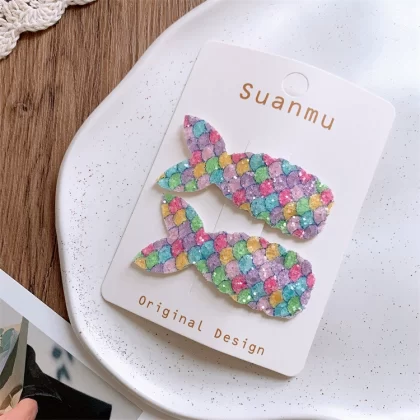 | nameOriginal | Children's shiny mermaid tail colorful hair clip cute girls side broken hair BB clip baby princess bangs clip |