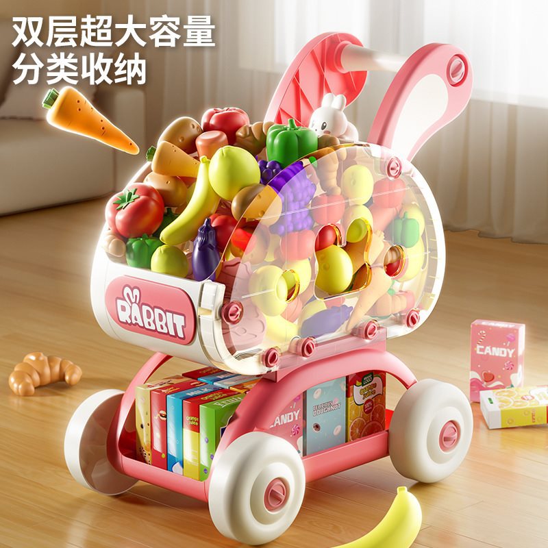 عربة تسوق للأطفال لعبة عربة للعب المنزل كبيرة بطبقة مزدوجة للتخزين عربة أطفال قابلة للتعديل