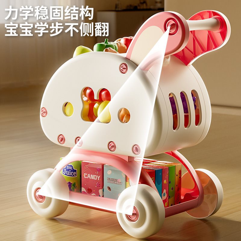 Children's Shopping Cart Toy Trolley for Play Home Large Double Layer Storage Adjustable Baby Trolley Shopping Cart