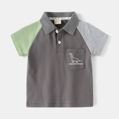 Children's short-sleeved T-shirt 2024 new boys' summer polo shirt baby top Korean style patch bag children's clothing wholesale fashion