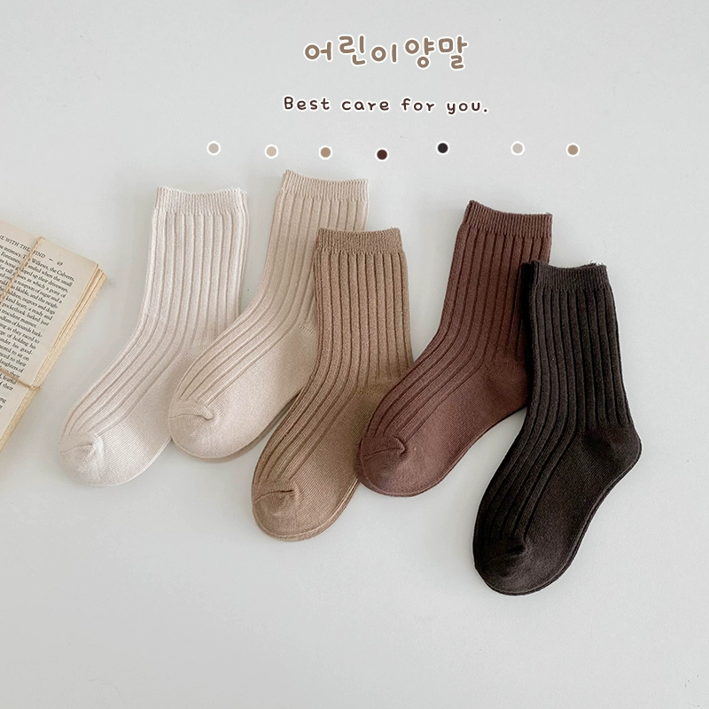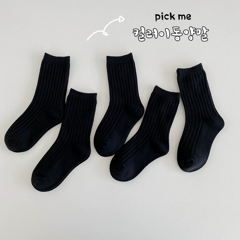 Children's socks autumn and winter pure cotton socks for boys and girls candy-colored mid-calf socks double-needle student white socks baby boneless socks
