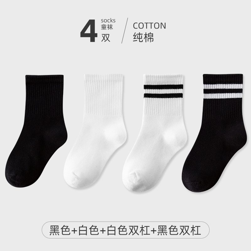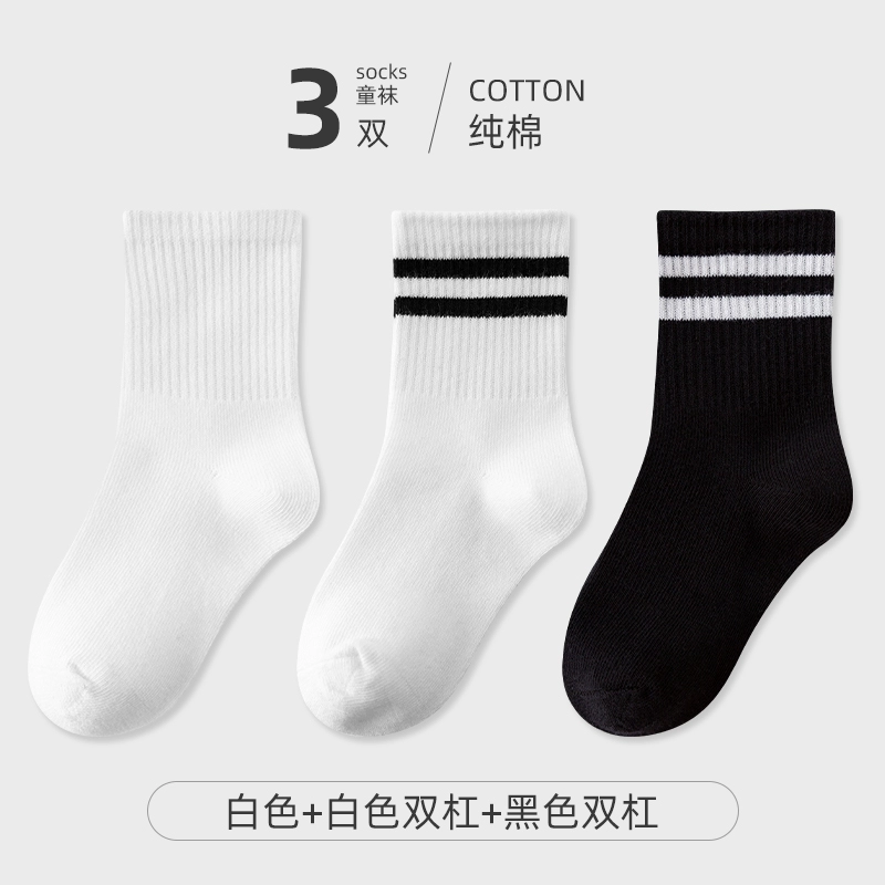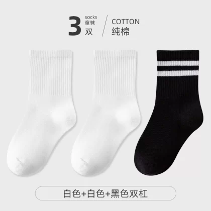 | nameOriginal | Children's socks, spring and autumn pure cotton student socks, boys and girls, thin cotton socks, black and white sports socks, big children's mid-calf socks |