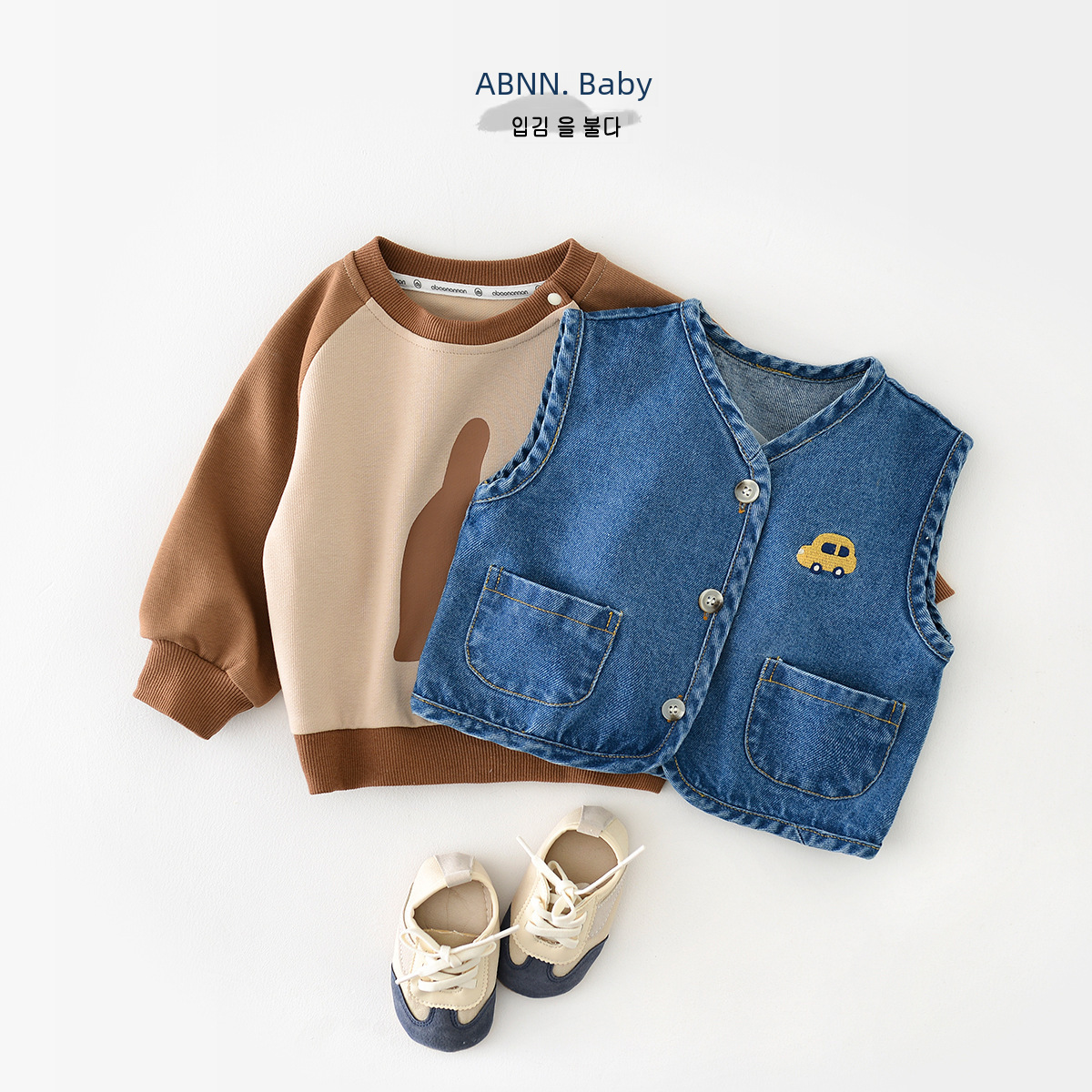 Children's spring vest infant cute cartoon car vest male and female baby Korean style washed Denim top