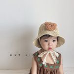 Children's Straw Hat Summer Seaside Sunshade Sun Hat Cartoon Bear Cute Super Cute Baby Sunscreen Hat Trendy