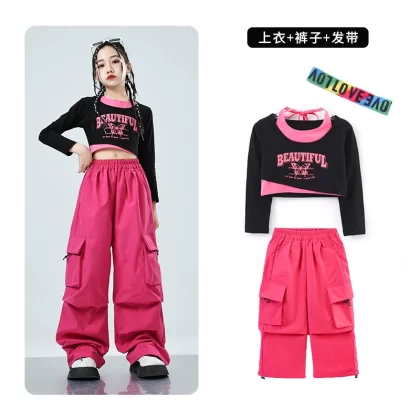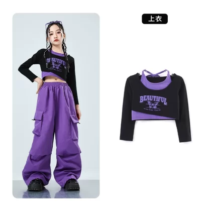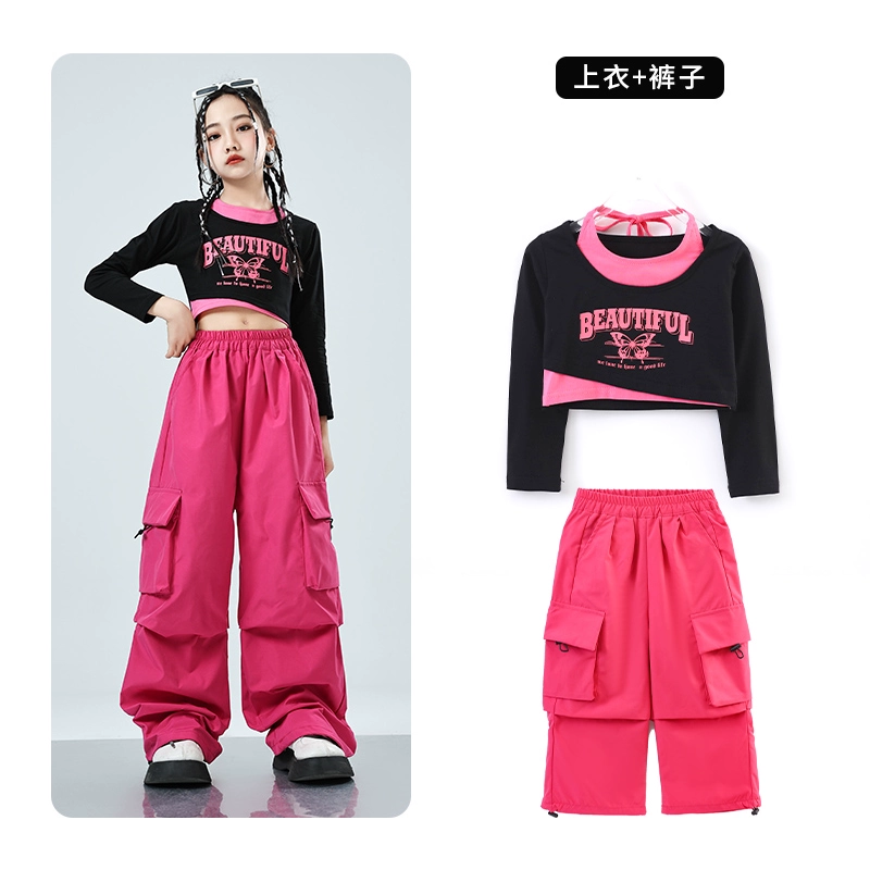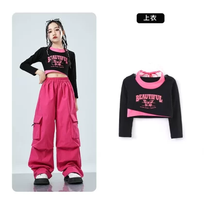 | nameOriginal | Children's street dance clothing, girl's navel-baring jazz dance performance clothing, model catwalk performance, fashionable dopamine long sleeves |