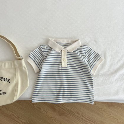 Children's Striped Polo Shirt 2024 Summer New Boys Stylistically Striped T-Shirt Baby Korean-style All-match Lapel Top