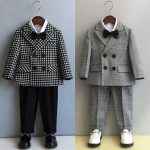 Children's Suit suit Autumn and Winter Flower Girls Wedding Dress Plaid Jacket British Style Performance Suit One Year Old Boys Suit