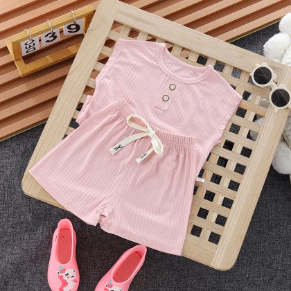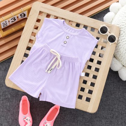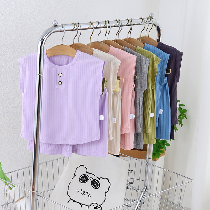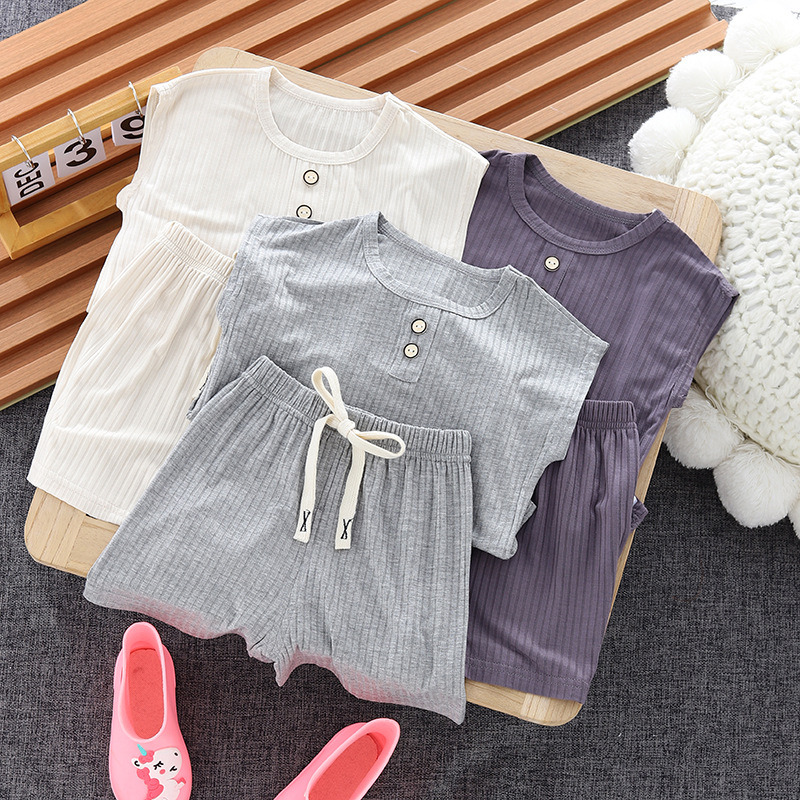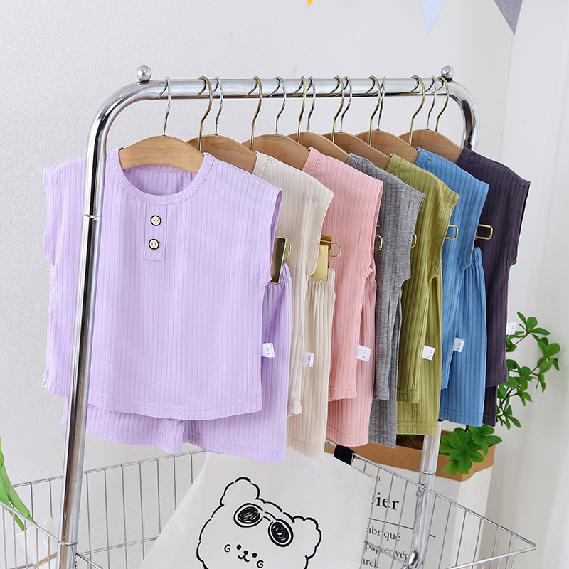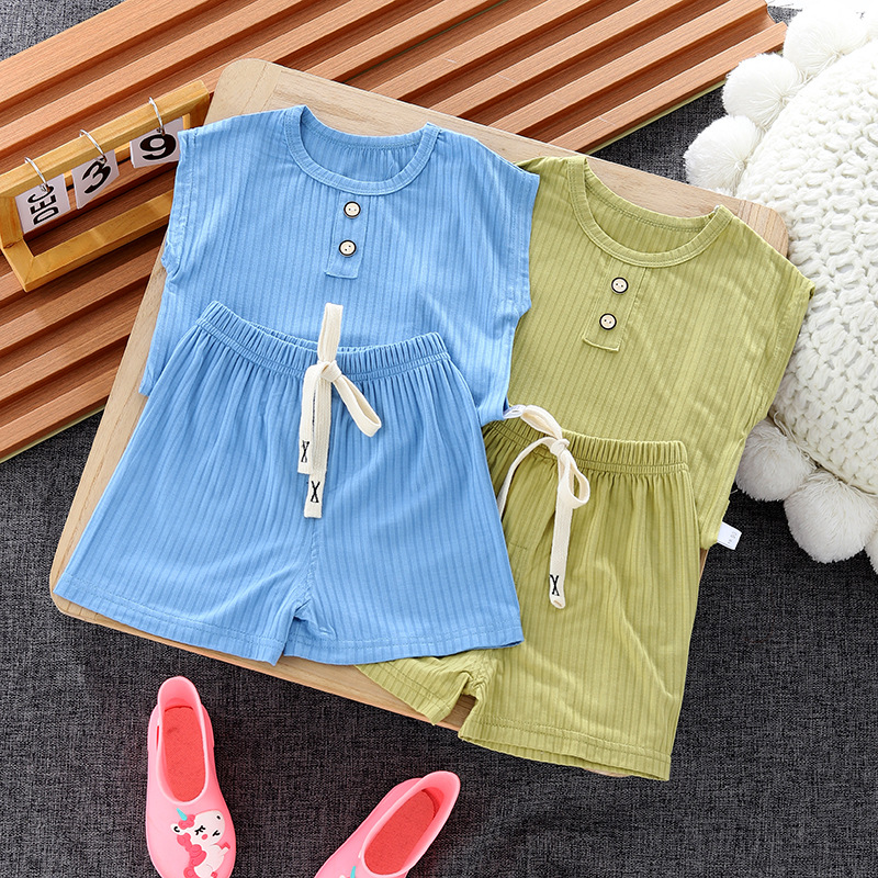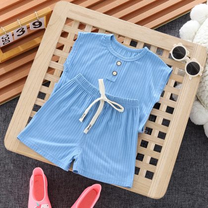 | nameOriginal | Children's Summer Internet-famous Pit Short-sleeved Shorts Set for Boys and Girls Baby Solid Color Western Style Vest Short Pants Cover |