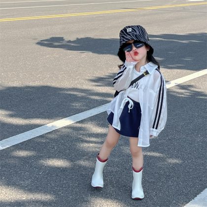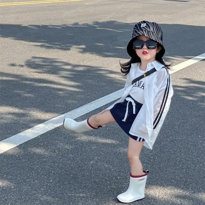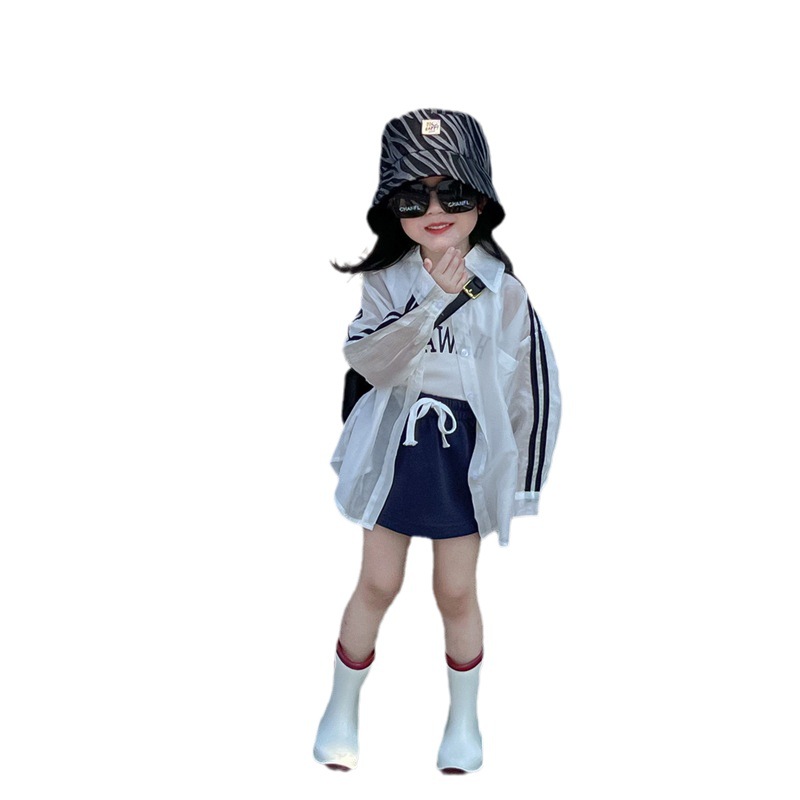 | nameOriginal | Children's Sunscreen Clothing Children's Clothing Girls' 2024 Summer Wear Bar Thin Sunscreen Clothing White Printed Vest Navy Blue Shorts |