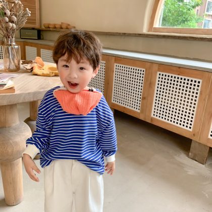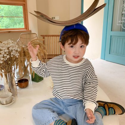 nameOriginal | Children's Sweat 2024 Spring Boys and Girls Korean Striped Sweat Children's Cotton Casual Loose Brother and Sister Clothes |