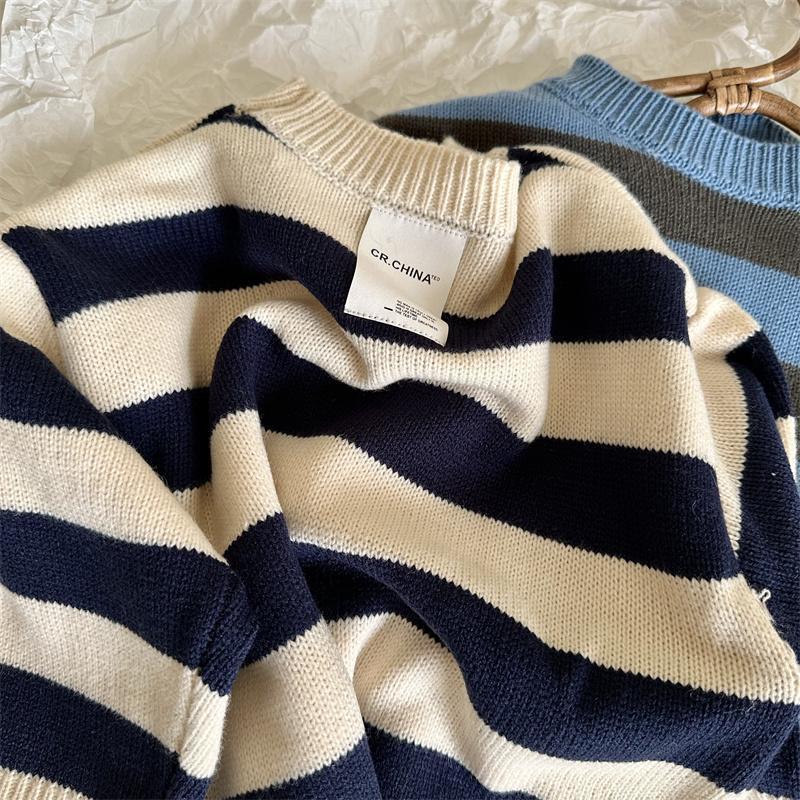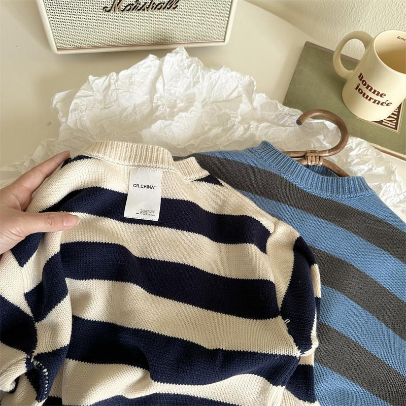 | nameOriginal | Children's sweater 2023 spring and autumn boys and girls color matching striped sweater baby round neck sweater 0110A028 |