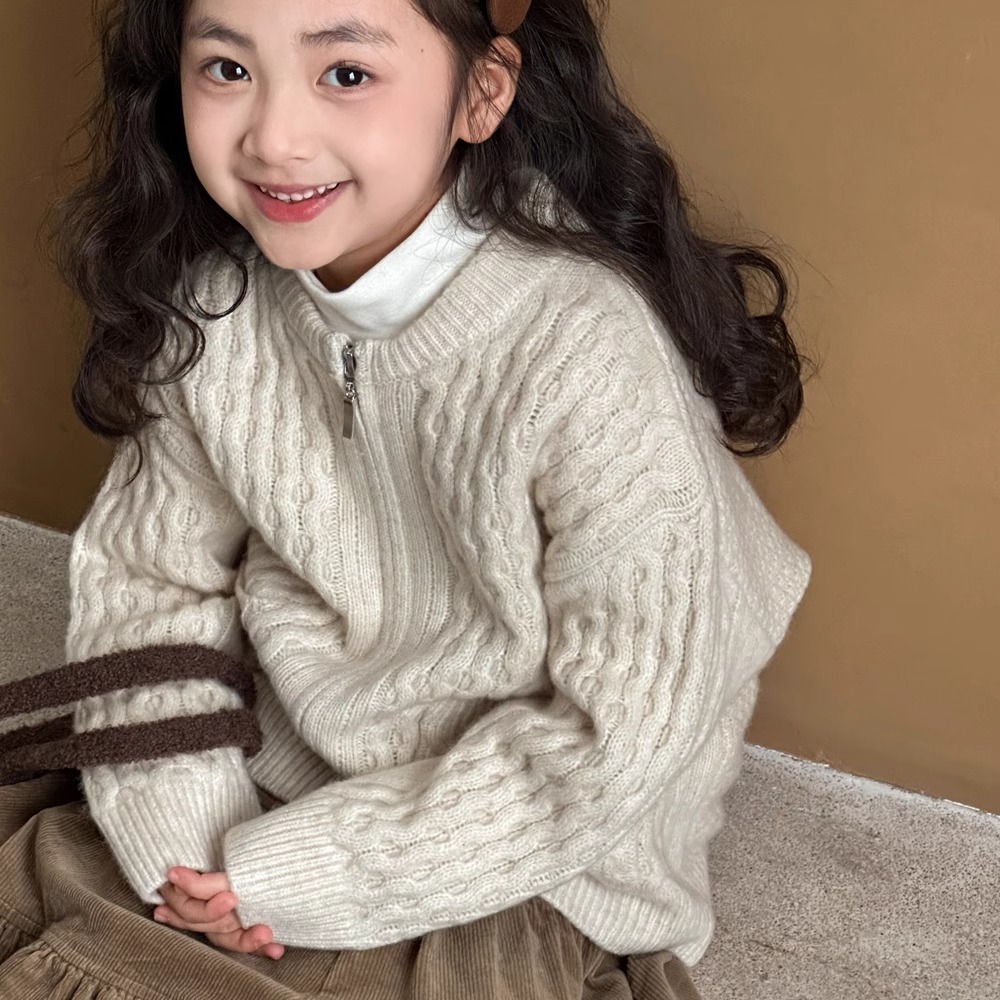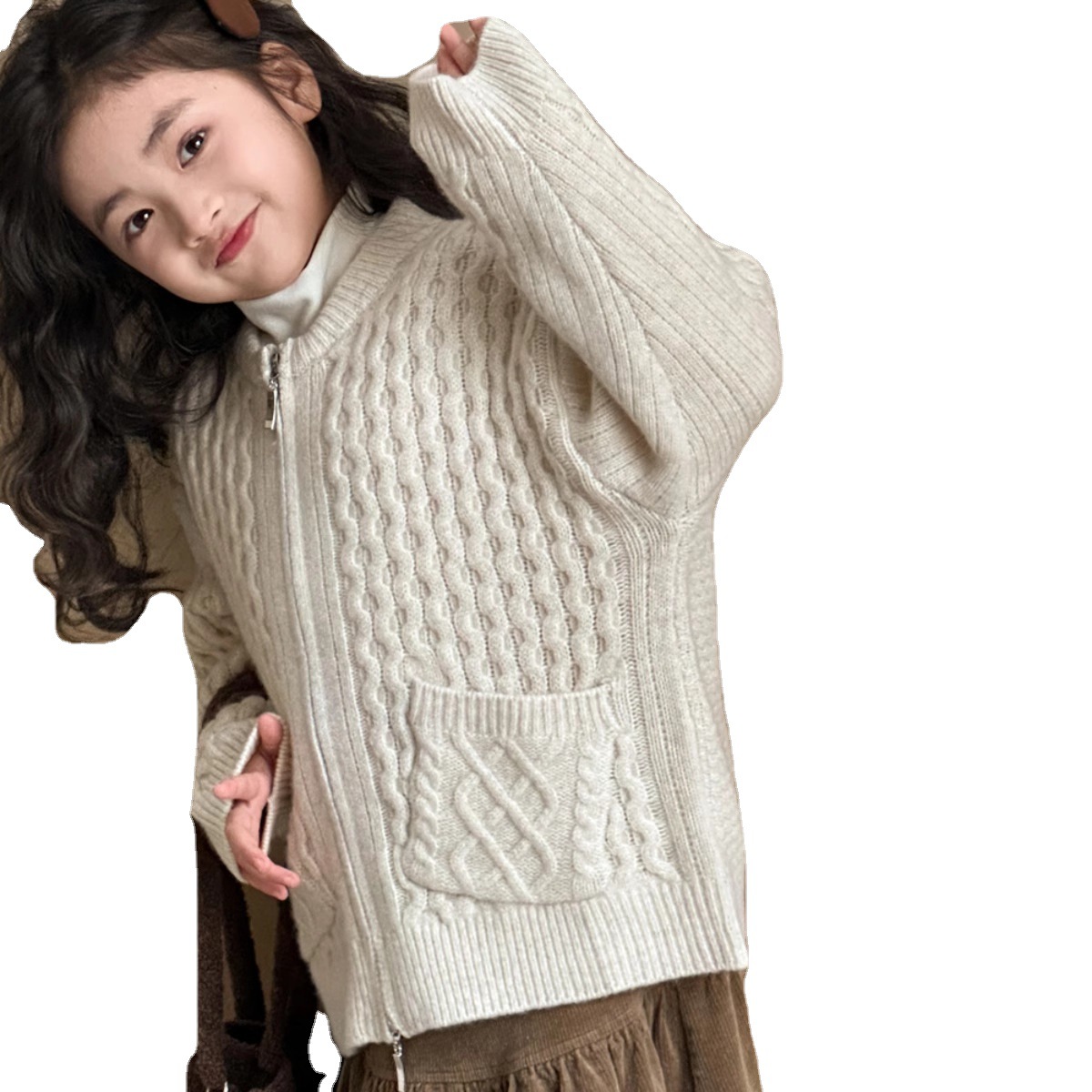| nameOriginal | Children's sweater 2024 spring new girls' simple sweater coat medium and big children's thick needle twist top cardigan |