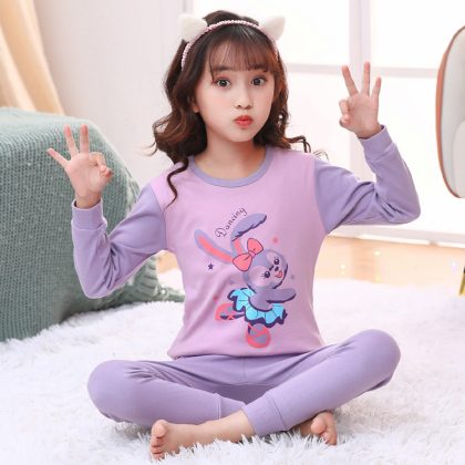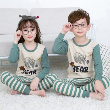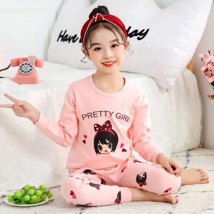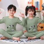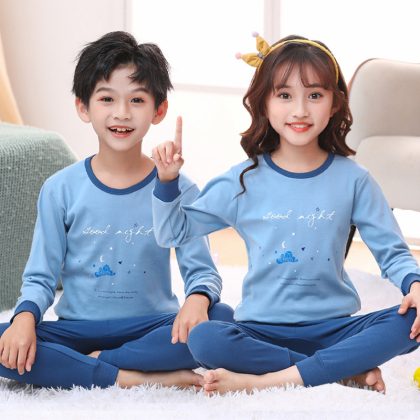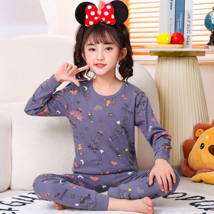 مجموعة ملابس داخلية حرارية للأطفال للخريف والشتاء قميص قطني للأولاد قميص نسائي كنز كارتوني قطني برقبة دائرية سروال خريفي