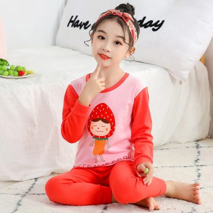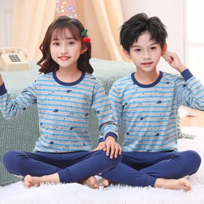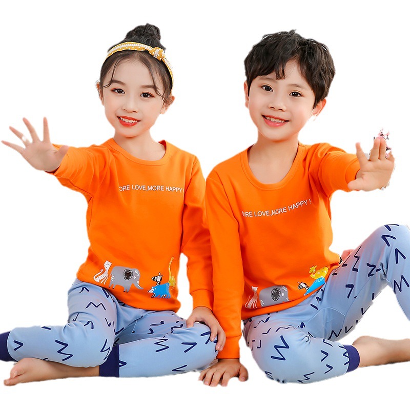 Children's thermal underwear set autumn and winter boys cotton bottoming shirt Women's treasure cartoon cotton round neck autumn pants