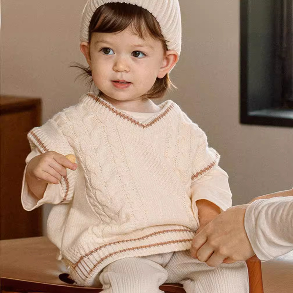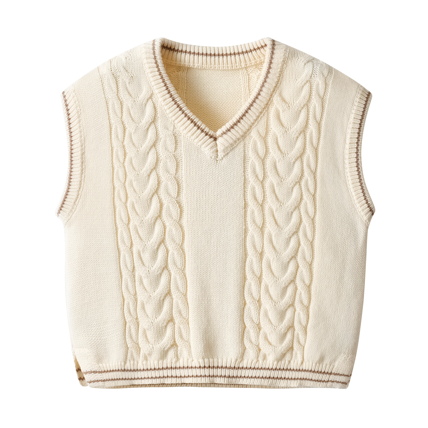 Children's vest 2024 spring new Korean style twist sweater baby versatile loose V-neck sweater vest