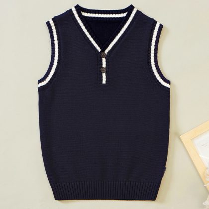 Children's Vest Boys Spring and Autumn Outer Wear British Style Student Half-chest Wool Vest Campus Class Wear Knitted Vest