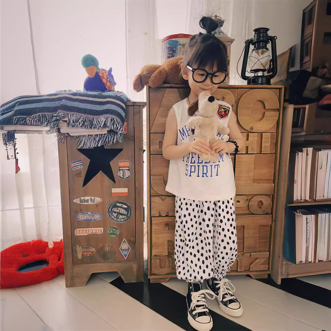 | nameOriginal | Children's Vest Summer Japanese DD Letter Print 2024 New Loose Comfortable Baby Boys and Girls Flocking Top |
