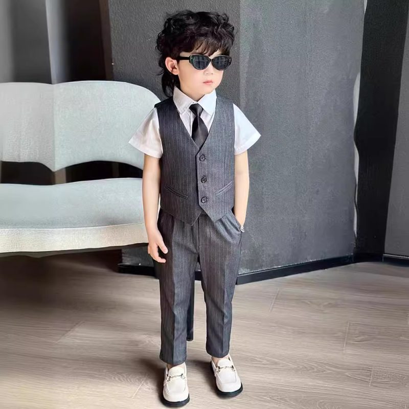 Children's waistcoat pants suit three-piece spring and summer boy's small suit flower girl dress