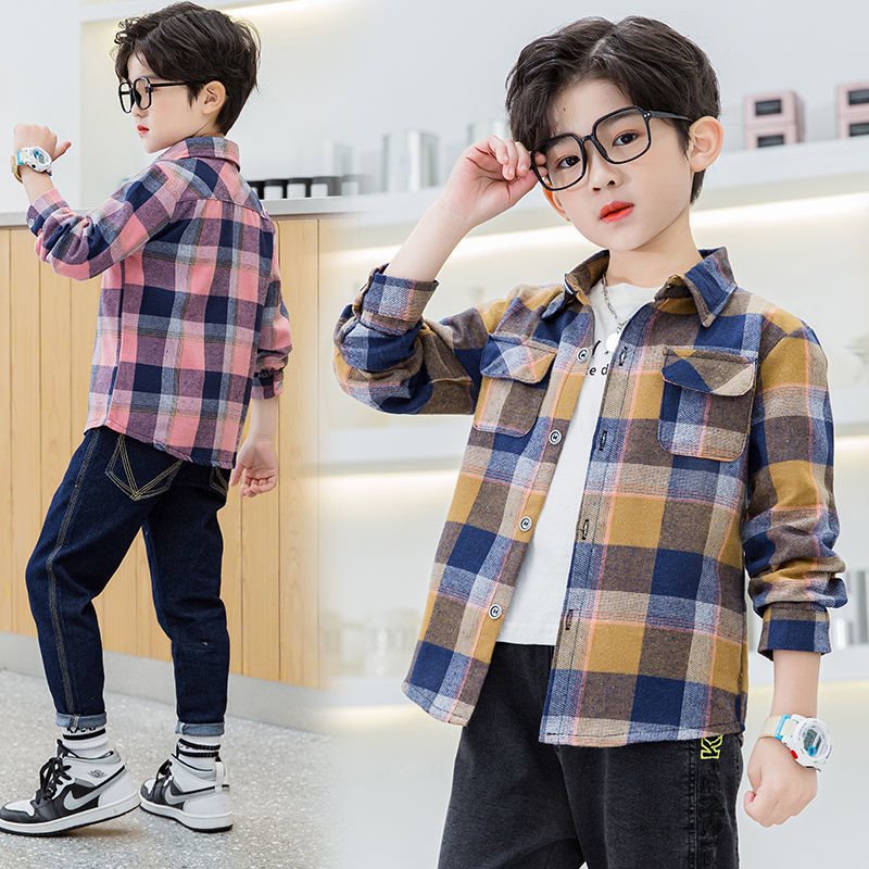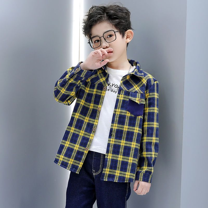 Children's Wear Boys' Spring Long Sleeve Shirt 2022 New Children's Fried Street Spring Top Large Children's Plaid Shirt Trendy