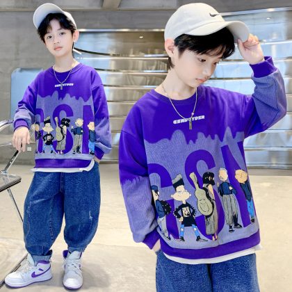 Children's Wear Boys' Spring Wear Sweatshirt 2024 New Spring and Autumn Style Boy's Fried Street Spring Big Boy's Handsome Top Trendy