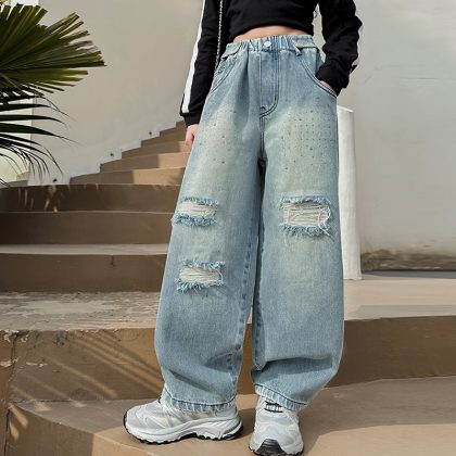 | nameOriginal | Children's Wear Girls' Jeans Spring and Autumn Big Children's Spring Wide Leg Pants Fashionable Western-style Loose Trendy Cool Spring Fashion |