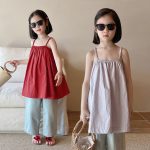 ملابس أطفال سترة بناتي للأطفال 2024 صيف جديد على الطراز الكوري منتصف الطول حبال صغيرة للأطفال على الطراز الغربي A498