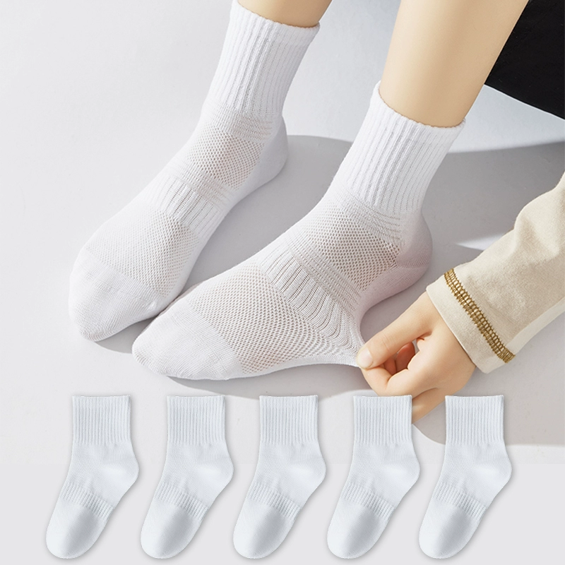 Children's white socks pure cotton boys and girls spring and autumn mesh socks for babies spring and summer boneless breathable student socks
