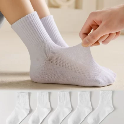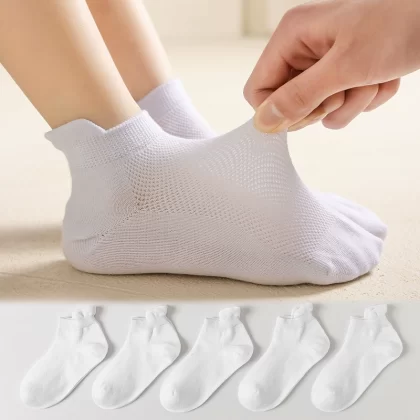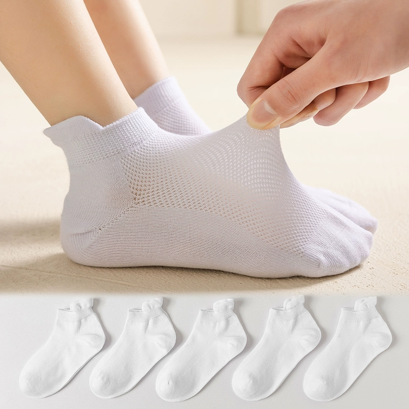 جوارب بيضاء للأطفال من القطن الخالص للأولاد والبنات جوارب شبكية للربيع والخريف للأطفال الرضع في الربيع والصيف جوارب طلابية قابلة للتنفس بدون عظم