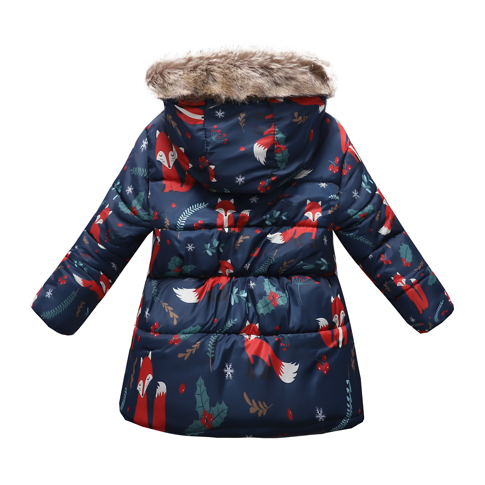 | nameOriginal | Children's winter New coat cotton-padded clothes European and American girls winter 6 color printing long wool collar hooded cotton-padded coat |